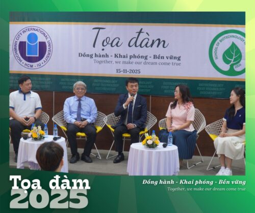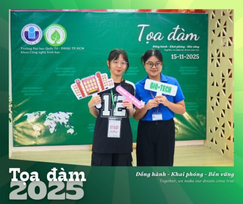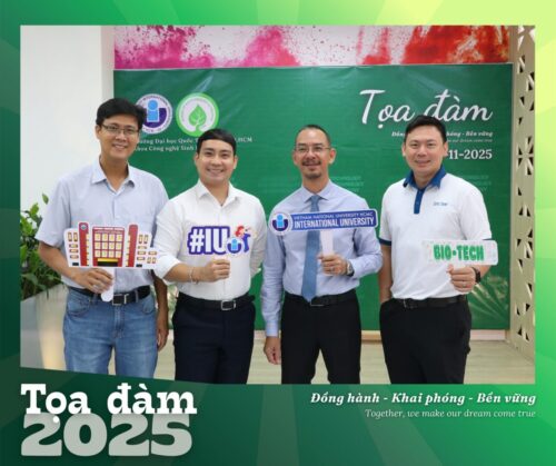 Sáng 15/11/2025, Khoa Công nghệ Sinh học – Trường Đại Học Quốc Tế – Đại học Quốc gia TP. HCM đã tổ chức buổi tọa đàm “Đ𝗼̂̀𝗻𝗴 𝗵𝗮̀𝗻𝗵 – 𝗞𝗵𝗮𝗶 𝗽𝗵𝗼́𝗻𝗴 – 𝗕𝗲̂̀𝗻 𝘃𝘂̛̃𝗻𝗴. 𝗧𝗼𝗴𝗲𝘁𝗵𝗲𝗿 𝘄𝗲 𝗺𝗮𝗸𝗲 𝗼𝘂𝗿 𝗱𝗿𝗲𝗮𝗺 𝗰𝗼𝗺𝗲 𝘁𝗿𝘂𝗲”, một không gian nơi sinh viên, cựu sinh viên, doanh nghiệp và thầy cô cùng gặp gỡ và chia sẻ.