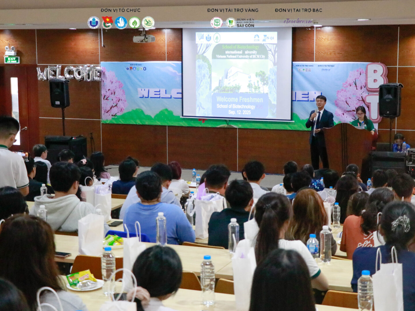 Sáng ngày 12/9/2025, tại hội trường A2.307 – Trường Đại học Quốc tế, ĐHQG-HCM, Khoa Công nghệ Sinh học đã tổ chức chương trình WELCOME FRESHMEN 2025, chào đón 155 tân sinh viên khóa 2025 – những mảnh ghép mới đầy nhiệt huyết của đại gia đình BT.