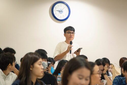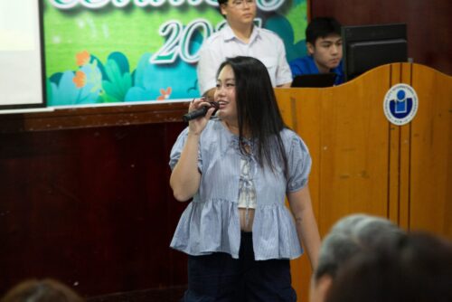 Bên cạnh các tiết mục văn nghệ hấp dẫn, các bạn Tân Sinh viên cũng chăm chú lắng nghe lời chia sẻ của Quý Giảng viên. Sau phần phát biểu khai mạc và lời chào thân thương, các bạn Tân Sinh viên được sinh hoạt về những thông tin cơ bản như chương trình học, các tài khoản sinh viên, các câu hỏi thường gặp,… Các bạn sinh viên nhanh chóng nắm bắt thông tin và trả lời chính xác các câu hỏi đã nhận về cho mình những phần quà dễ thương.