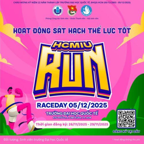 – Mỗi SV đăng ký tham gia sẽ nhận được Race bib, thời gian nhận bib: 08g30 – 16g30 các ngày 03/12 và 04/12/2025 – tại: Sảnh A1, Trường ĐH Quốc tế.